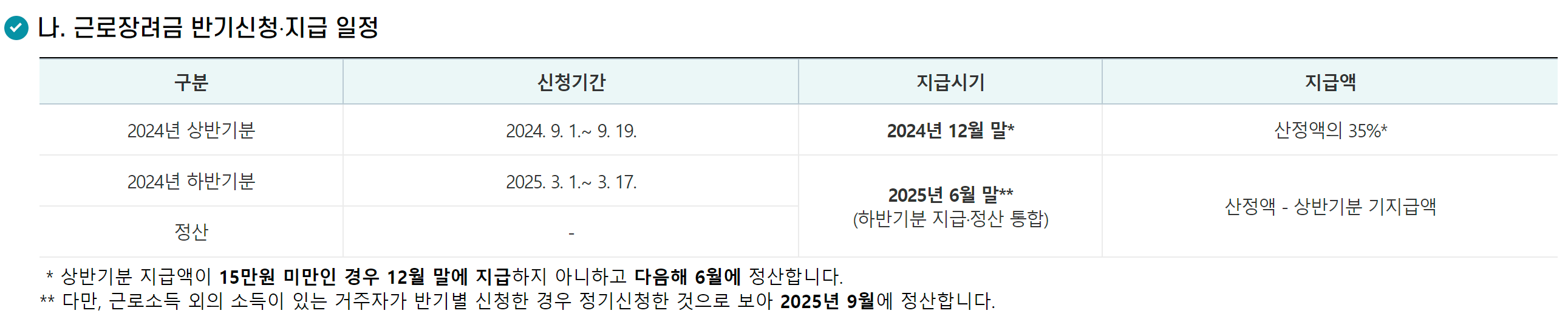근로장려금 반기신청 신청기간 지급일 금액