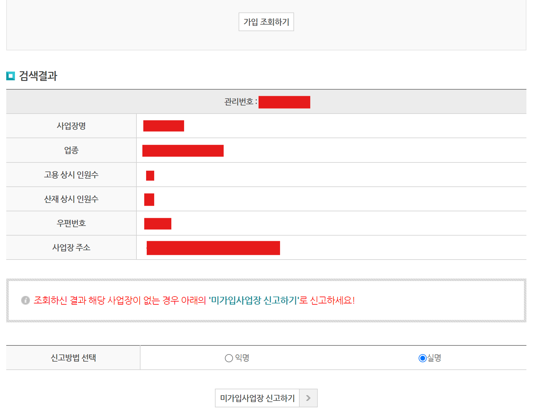 근로복지공단 홈페이지 사업장관리번호 조회하는 부분에서 가장 아래 부분에 미가입사업장 신고하기로 신청하면 끝!