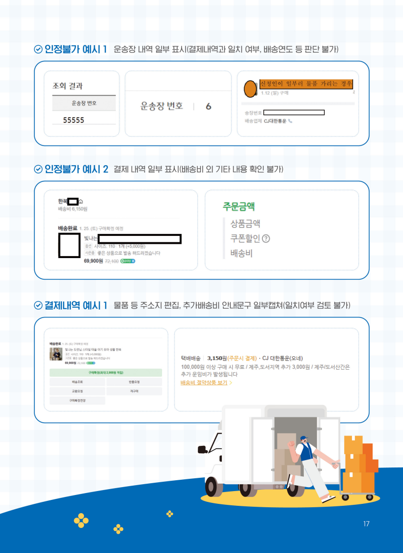 - 택배 운송장 사본 또는 택배 이용완료 내역