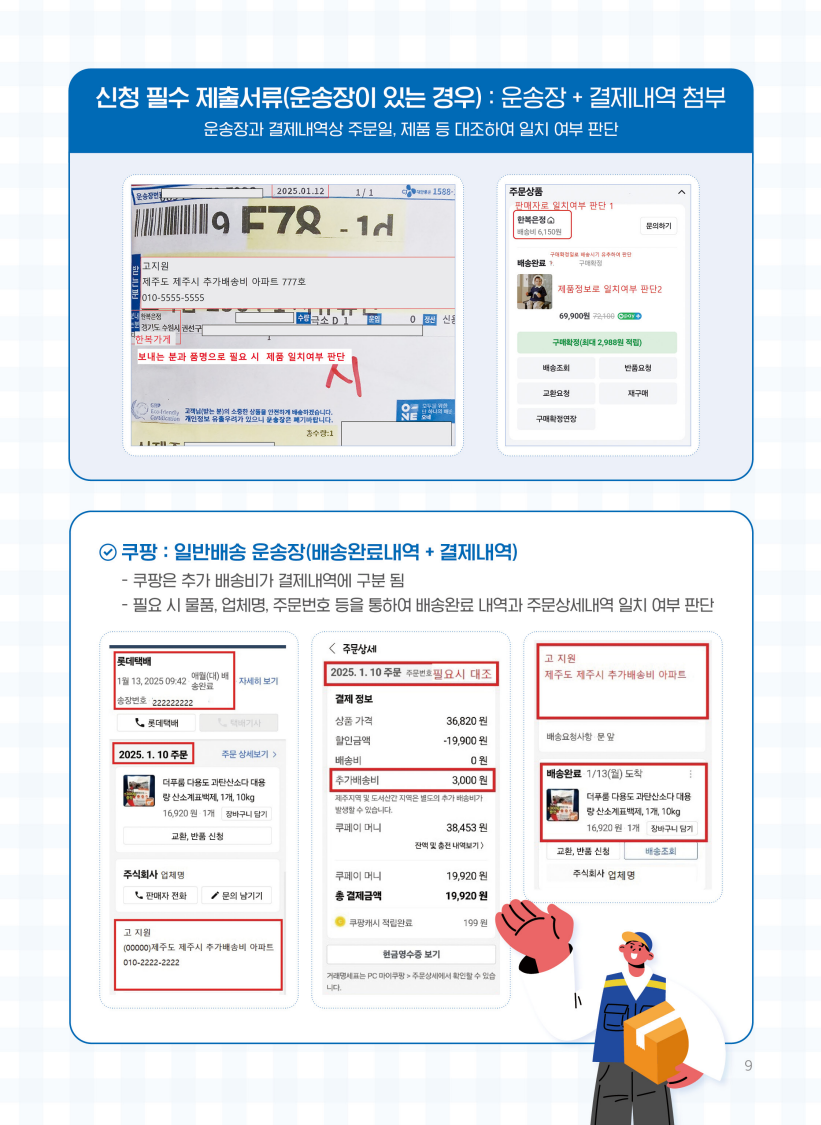 "택배 이용 시 발생하는 추가 배송비만을 지원 대상으로 합니다. 따라서 신청자는 자신이 제출한 택배가 지원 조건에 부합하는지 반드시 확인해야 합니다."