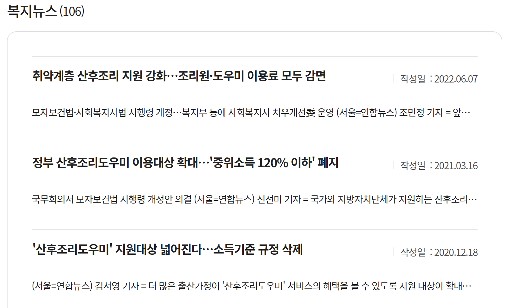 - 출산 후 산모 상태에 따라 전문 도우미 배정