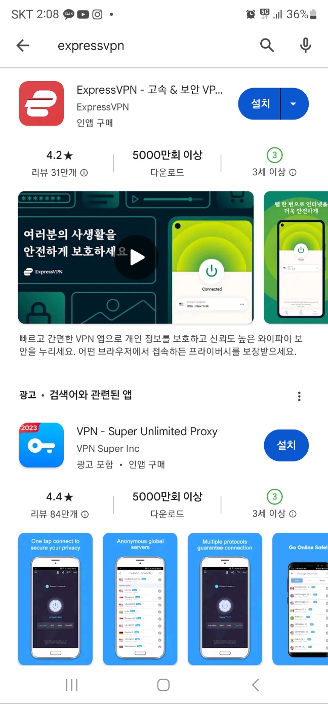 꼭 ExpressVPN이 아니어도 됩니다. 제가 다른걸 안 써봐서 이걸로 글을 쓰는 것일 뿐입니다. 단지 무료버전은 검증이 잘되어있지 않고 해킹의 위험이 많을 수도 있기 때문에 추천드리지 않습니다.