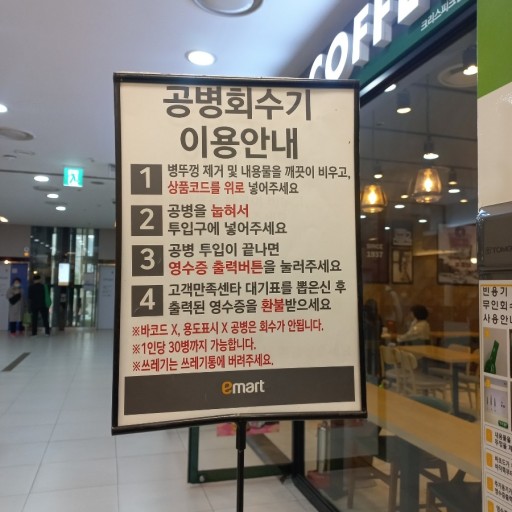 하지만 이제 주변에 이런 무인회수기 위치를 파악할 수만 있다면 1인당 1일 30개까지 가능하므로 30개 정도씩 모아서 가져만가도 3000원에서 5000원 정도의 부가수입이 생기니 어디 외출하실 일이 있어나 장 보러 가실 일이 있을 때 한 번씩 들고 가면 좋을 것 같습니다.