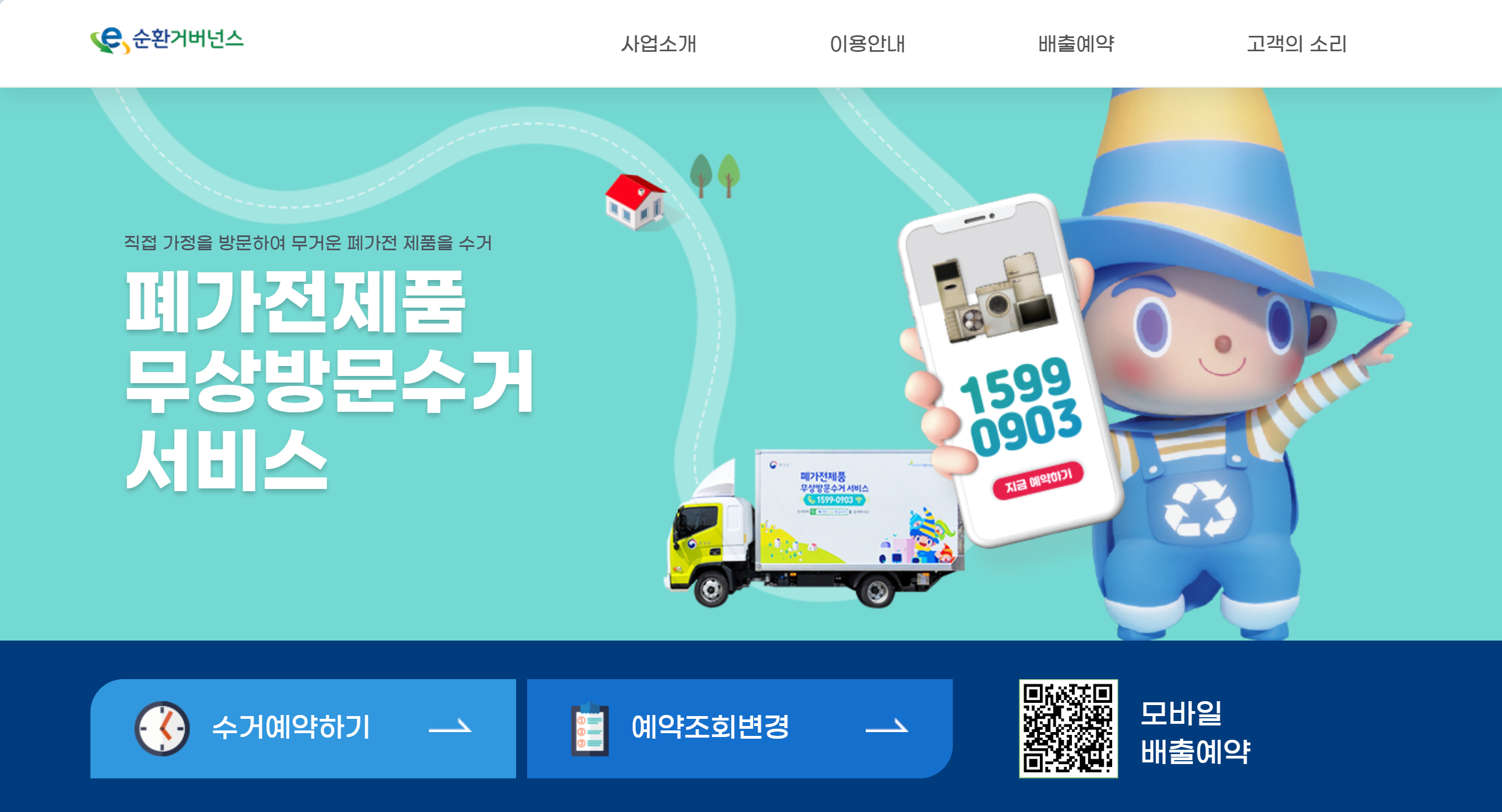 - 신청방법은 온라인신청 (https://www.15990903.or.kr) 폐가전제품 배출예약시스템으로 접속하셔서 신청하셔도 되고
