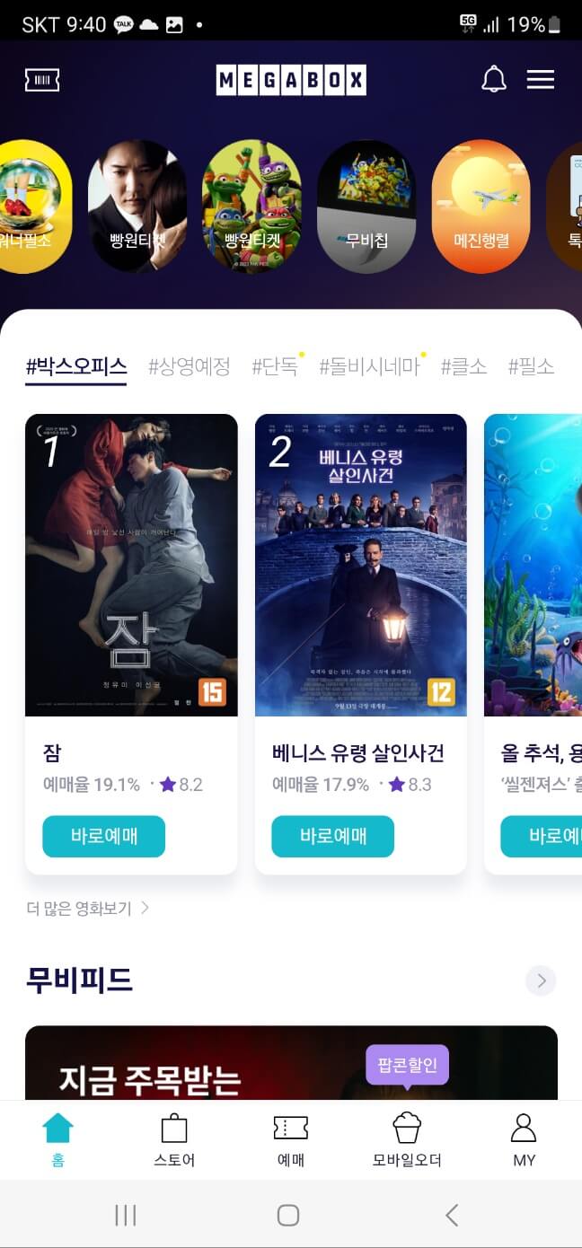 메가박스 역시 앱을 열고 바로 상단에 보이는 사진메뉴들 중에 빵원티켓을 클릭합니다.