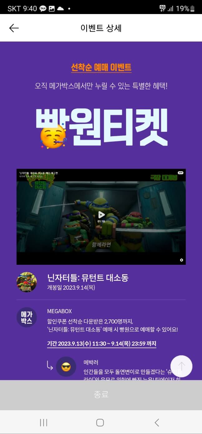 메가박스의 경우 할인금액이 아니라 아예 빵원으로 고정된 이벤트입니다. 이미 진행 중인 빵원티켓이벤트는 대부분 종료되어 있을 가능성이 크니, 우측 빵원티켓 사진을 클릭하셔서 앞으로 나올 영화 이벤트에 시간에 맞춰 응모하시면 당첨될 가능성이 큽니다.