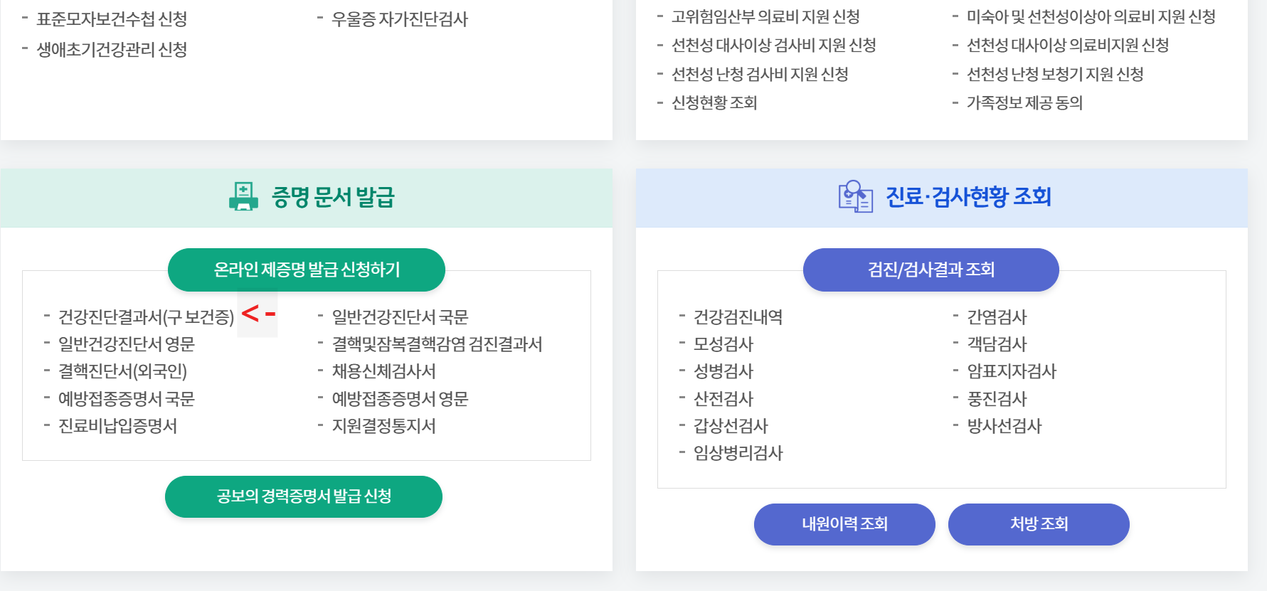 보건복지부 운영 온라인민원 서비스,보건증 등 제증명 발급, 의료비지원, 동네보건소정보, 보건교육신청 등 안내