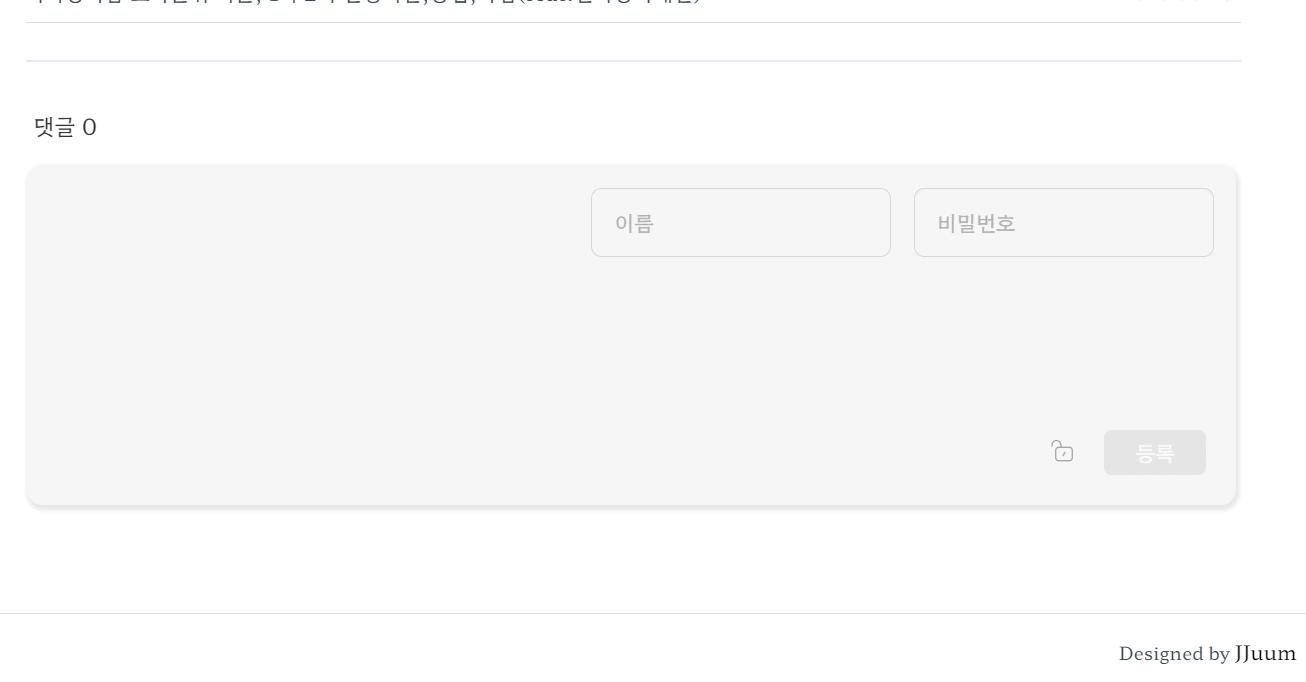코드수정을 하고 나서 본인 티스토리에 접속을해보면 아래 사진에 있는 댓글을 적는 공간자체가 사라져버립니다.
