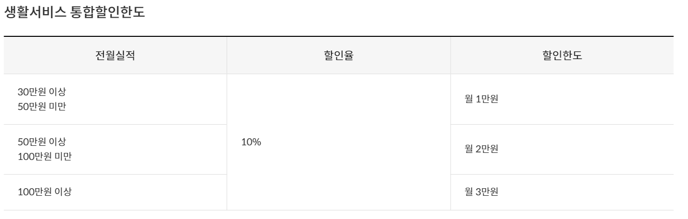 1. 생활서비스 할인 : 월 할인한도 최대 3만 원