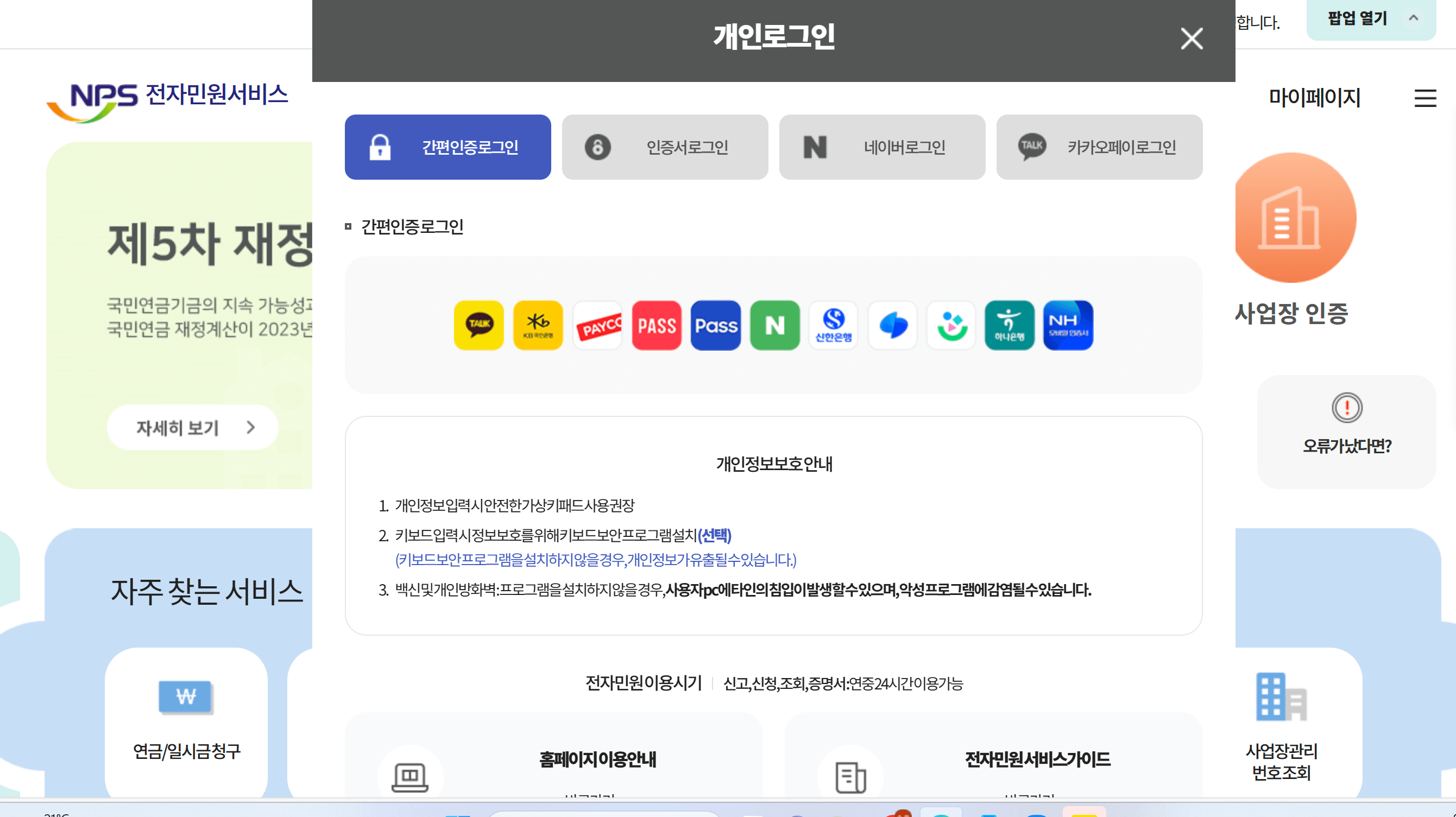1. 먼저 국민연금공단 홈페이지에 접속합니다.