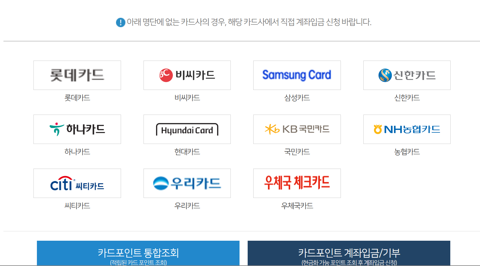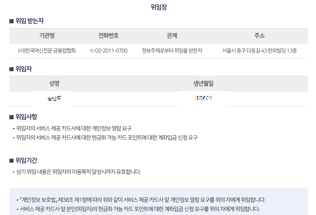 이번에 카드포인트 통합조회를 이용하여 여신금융협회사이트를 통해 회원가입 없이 단 한 번의 인증으로 모든 카드사 포인트를 통합으로 조회하고 그 포인트를 모아서 한 번에 계좌이체를 받을 수가 있게 되었습니다.