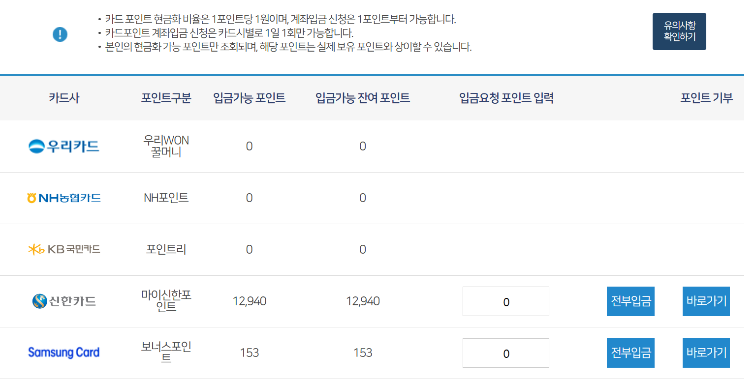 카드포인트 통합조회로 현금으로 돌려받자 / 모든 카드사 한 번에 조회하고 이체 가능