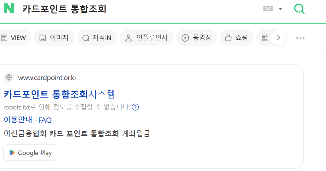 1. 네이버나 구글을 통해 '카드포인트 통합조회'라고 검색합니다.