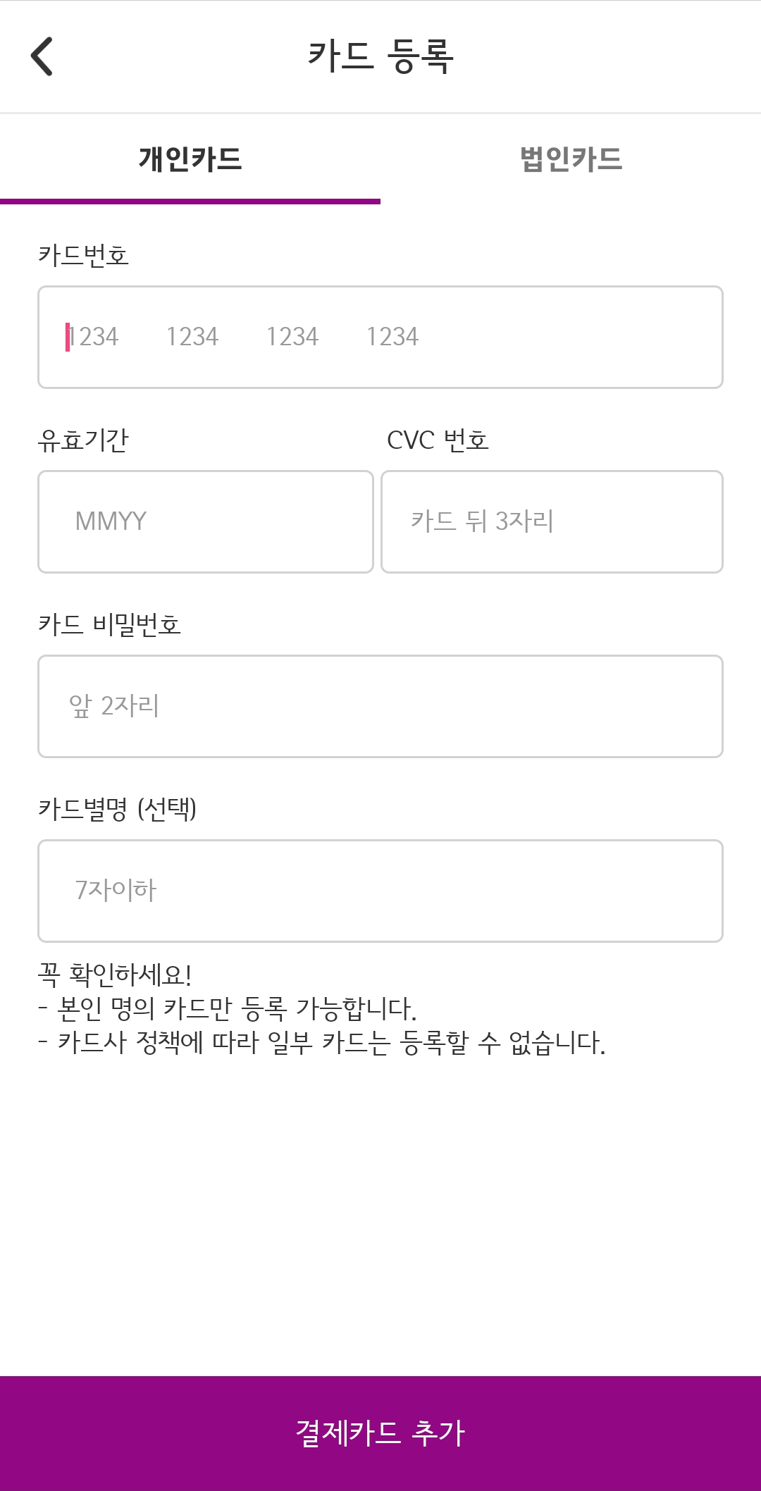 2. 카드 등록을 합니다.