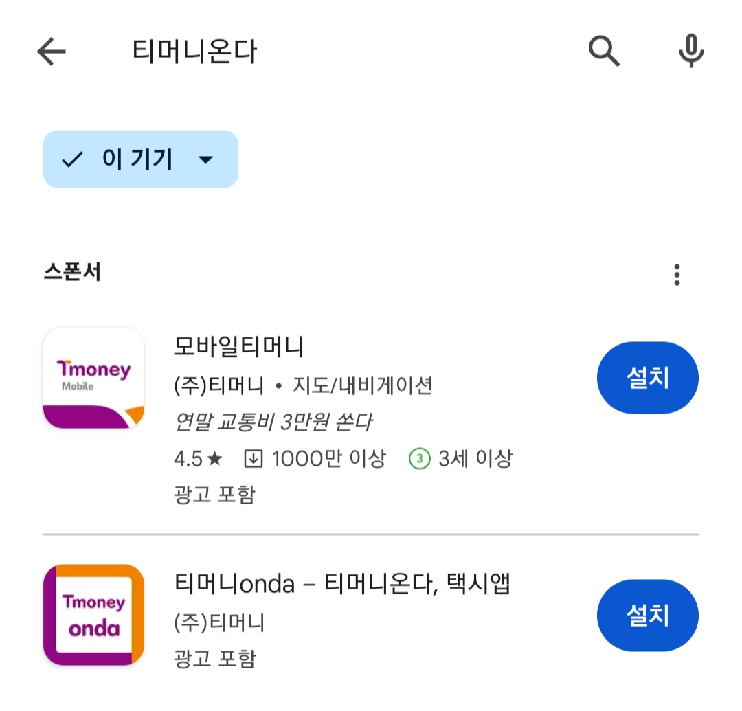 1. 구글플레이에서 티머니 온다 택시를 설치합니다.