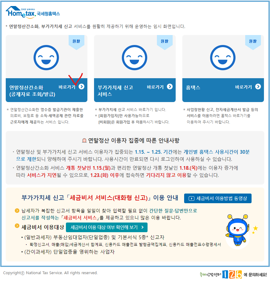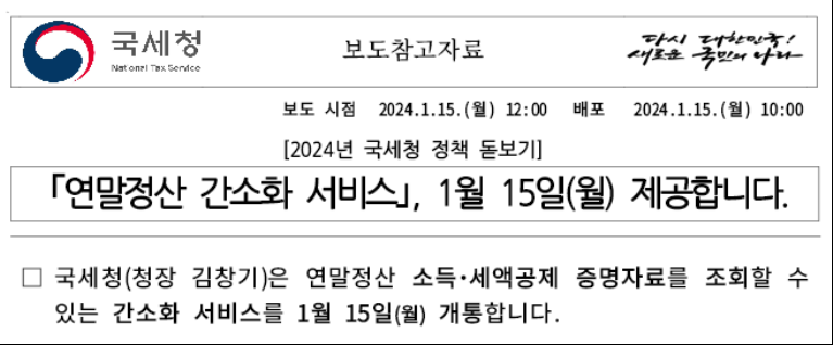 연말정산 간소화 서비스 이용시기는 1월15일 부터 제공이 가능합니다.