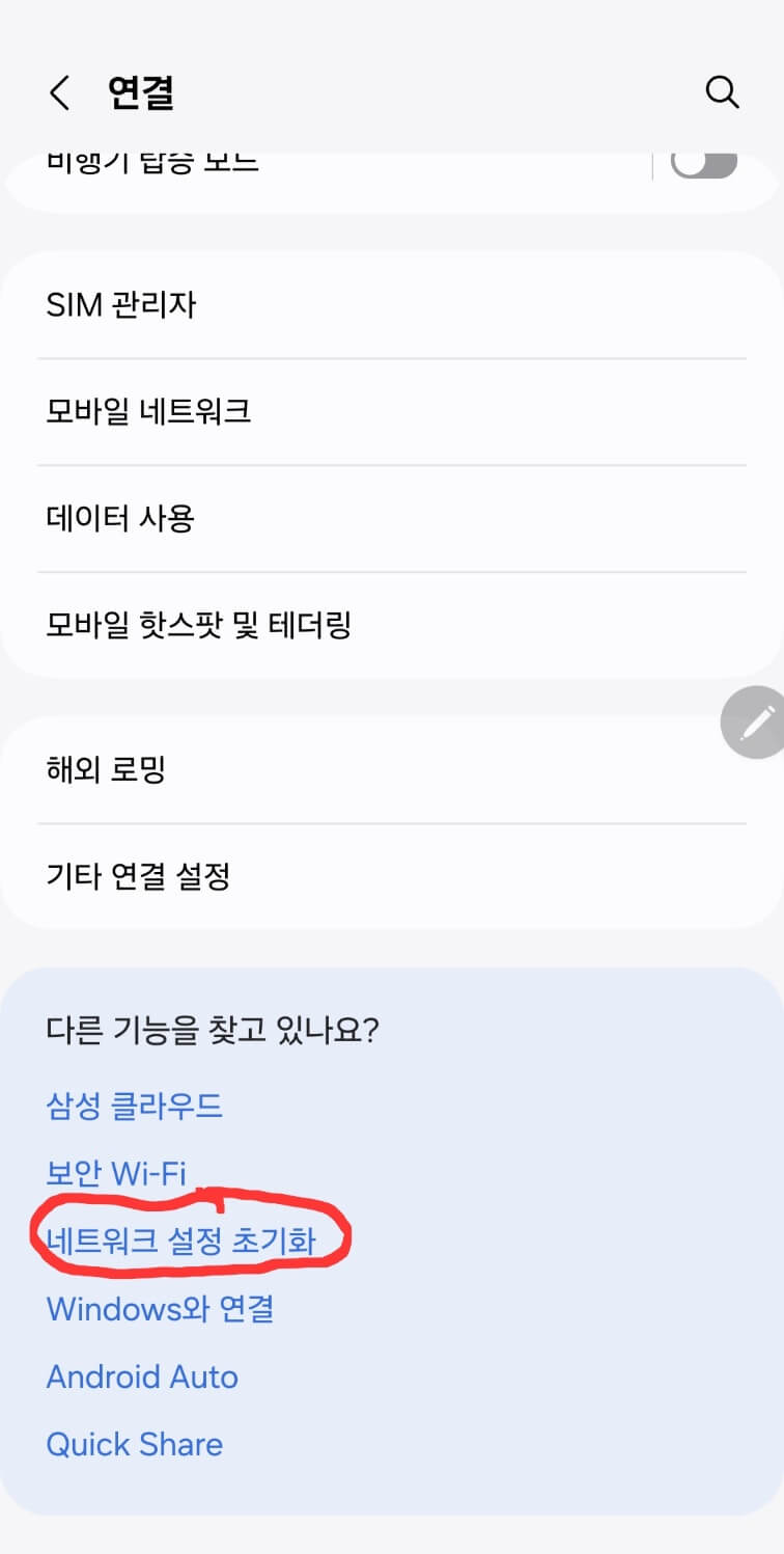 ✅하단에 네트워크 설정 초기화를 합니다.