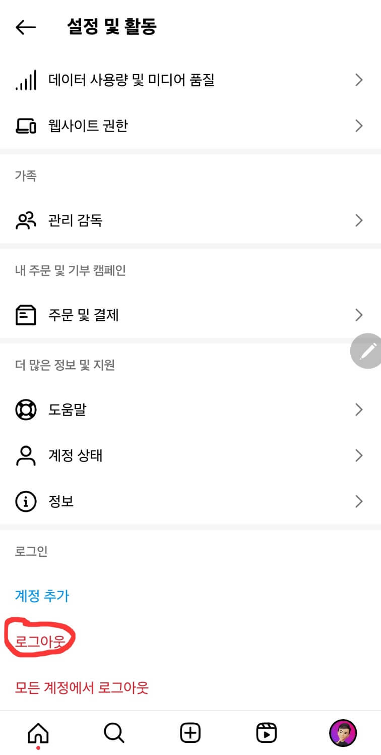 2. 인스타그램 로그아웃하고 재로그인하기